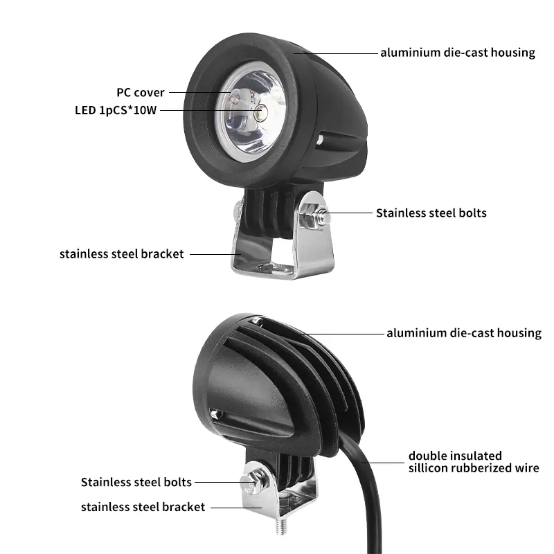 Aluminum is a lightweight metal that is strong and durable, which makes it an ideal material for motorcycle aux lights. When used in LED light housings, aluminum effectively draws heat away from the LED chip, preventing the light from overheating. To avoid performance degradation or failure. Aluminum housings often come with integrated heat sinks or heat sinks that increase the heat dissipation surface area for better cooling performance. This helps keep the LED at an optimal temperature, allowing it to maintain brightness and efficiency for a longer period of time.