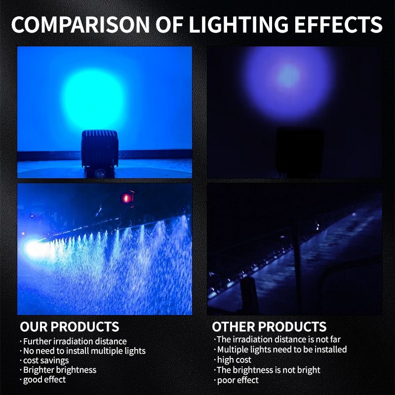 Clearer Spray Visibility: Optimized blue illumination eliminates blurred spray boundaries caused by white-light scattering at night.